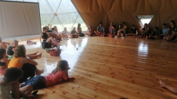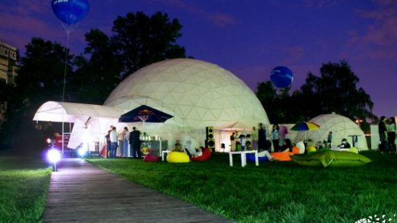 The dome is placed VO3DUH Àrt in part of the garden which is artistically organized an open-air space with a stationary scene. The area is located in the park area and is designed for performances, concerts, festivals, parties, theatrical performances, etc.