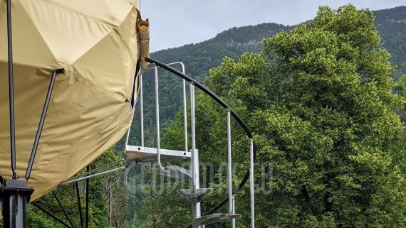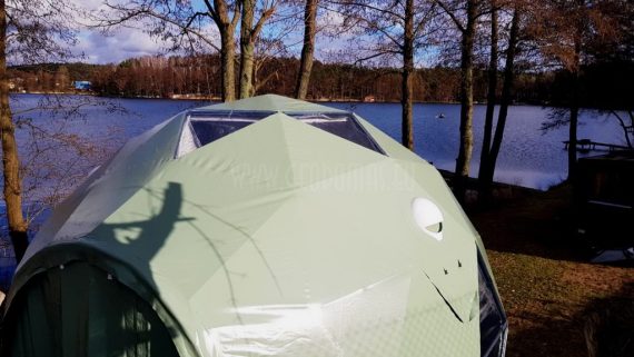 Introduction of this season, a 8 meter diameter dome of 50 m2 – GLAMPING DOME. One can watch the sunsets through the dome window during any weather. The dome is adapted for air temperatures of -30 to +80 degree Celsius and has a THERMIC.PRO13+ thermal membrane.