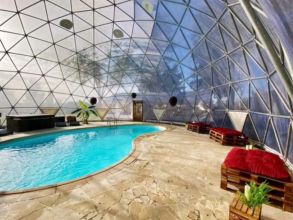 The “CRYSTAL Dome” is an extraordinary and innovative dome space, designed for ultimate comfort and aesthetic pleasure in nature! 🌲 This cozy 7 m² dome (Ø3m, height 4m) offers a perfect retreat for personal relaxation, dreamy glamping experiences, or luxurious hotel stays, allowing guests to enjoy mesmerizing panoramic views and starry skies.