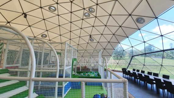 The “VIP Dome” features integrated LED lighting and a ventilation system that ensures comfort throughout the year. This spatial structure is versatile, capable of hosting a wide range of events, from weddings to business meetings, providing a unique atmosphere and unmatched aesthetics harmoniously aligned with the natural beauty of its surroundings.