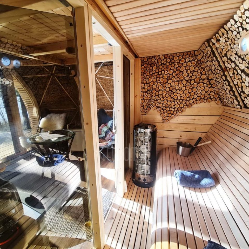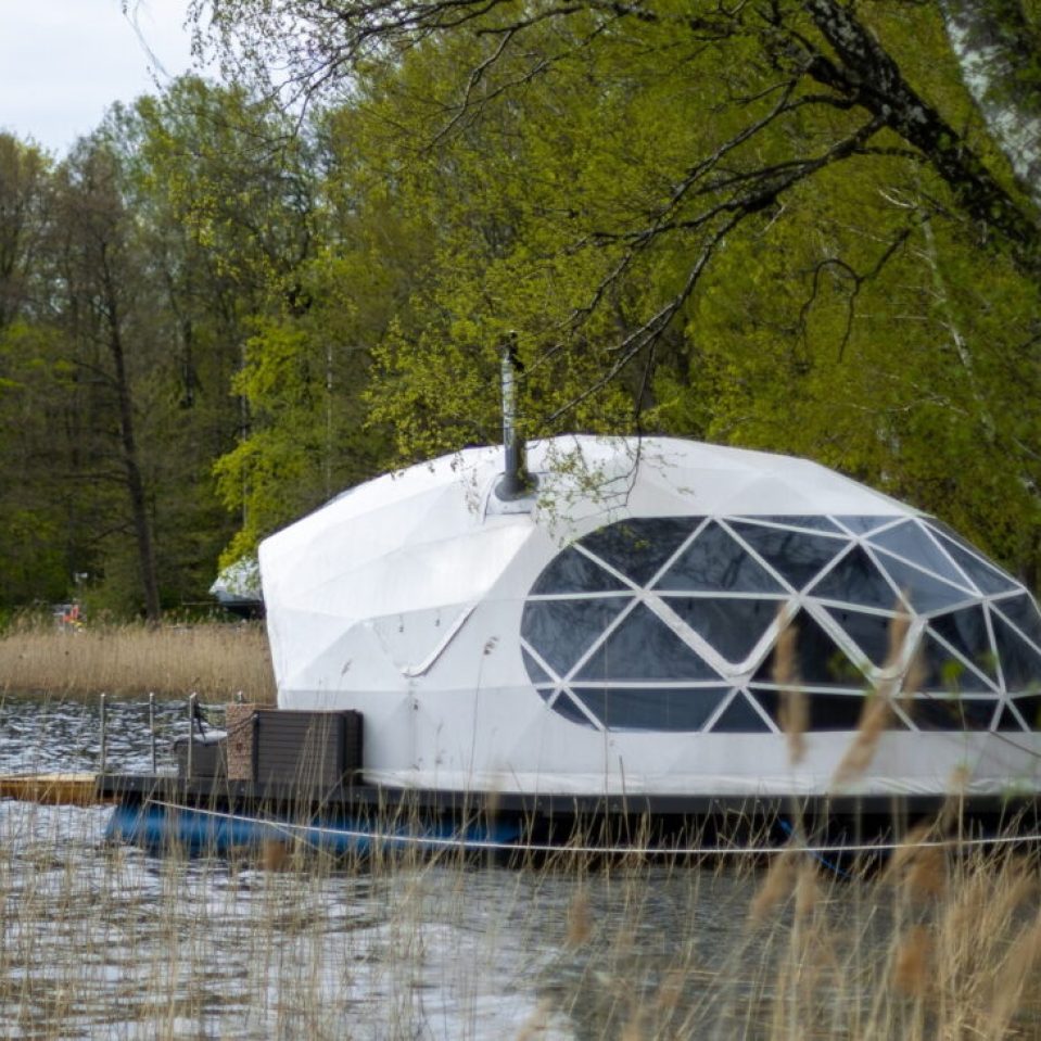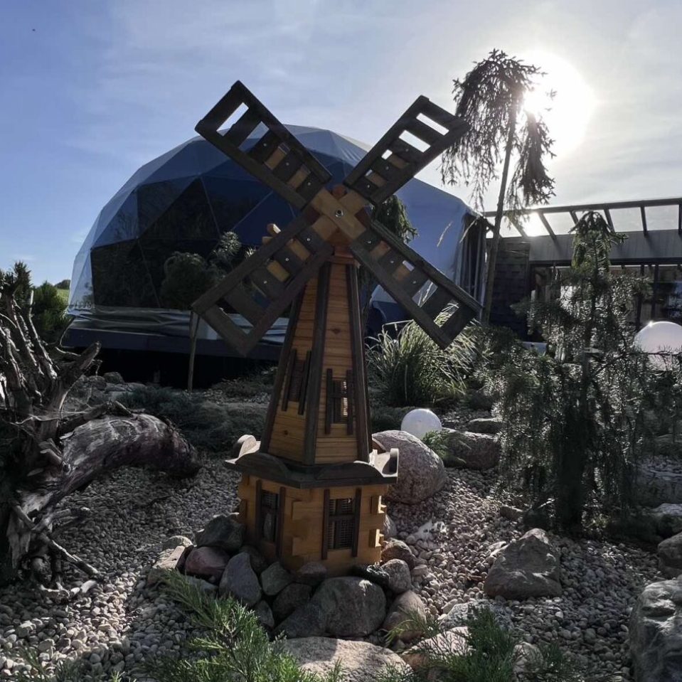 Introduction of this season, a 8 meter diameter dome of 50 m2 – GLAMPING DOME. One can watch the sunsets through the dome window during any weather. The dome is adapted for air temperatures of -30 to +80 degree Celsius and has a THERMIC.PRO13+ thermal membrane.