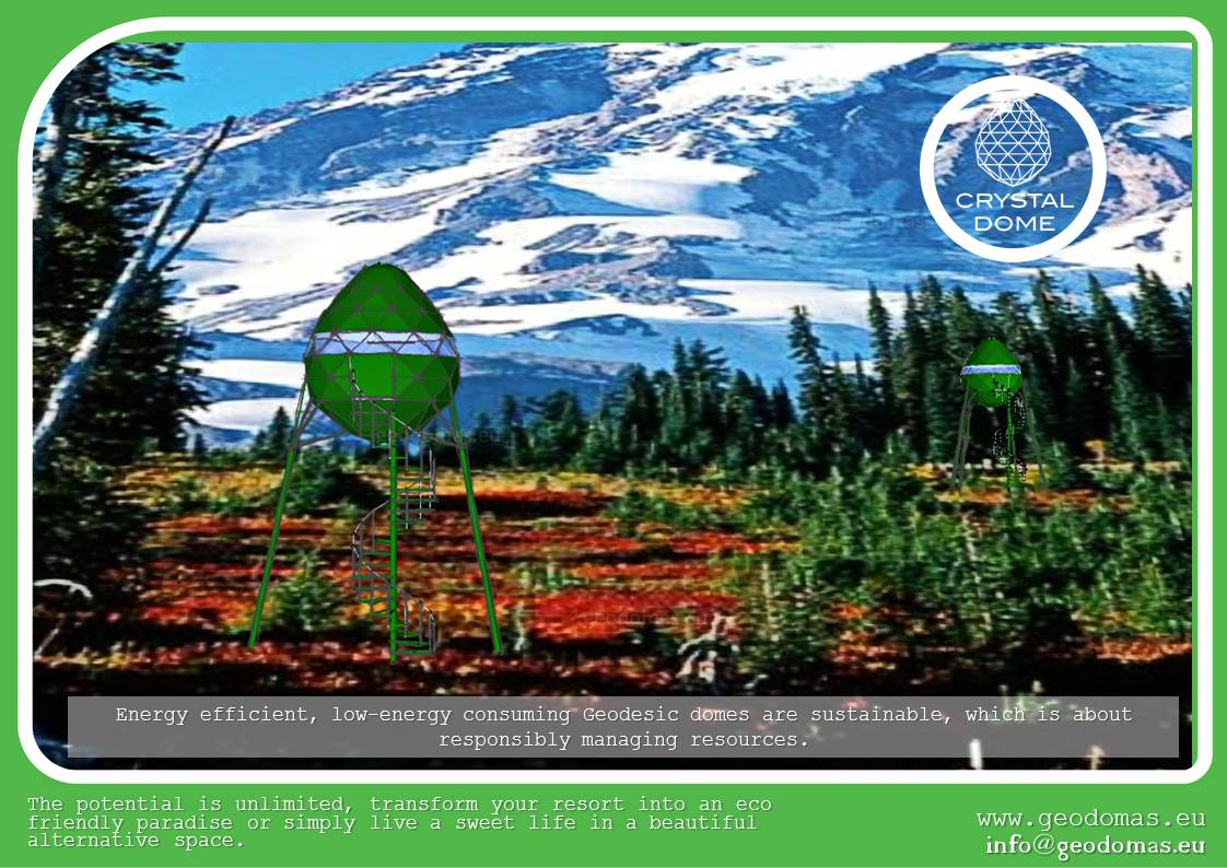 b) Energy efficient, low-energy consuming Geodesic domes are sustainable, which responsibly manages the resources.