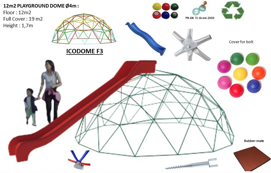 Dome shape playgrounds has a long term. Frame can be used of various materials:
