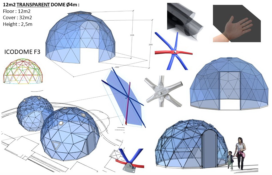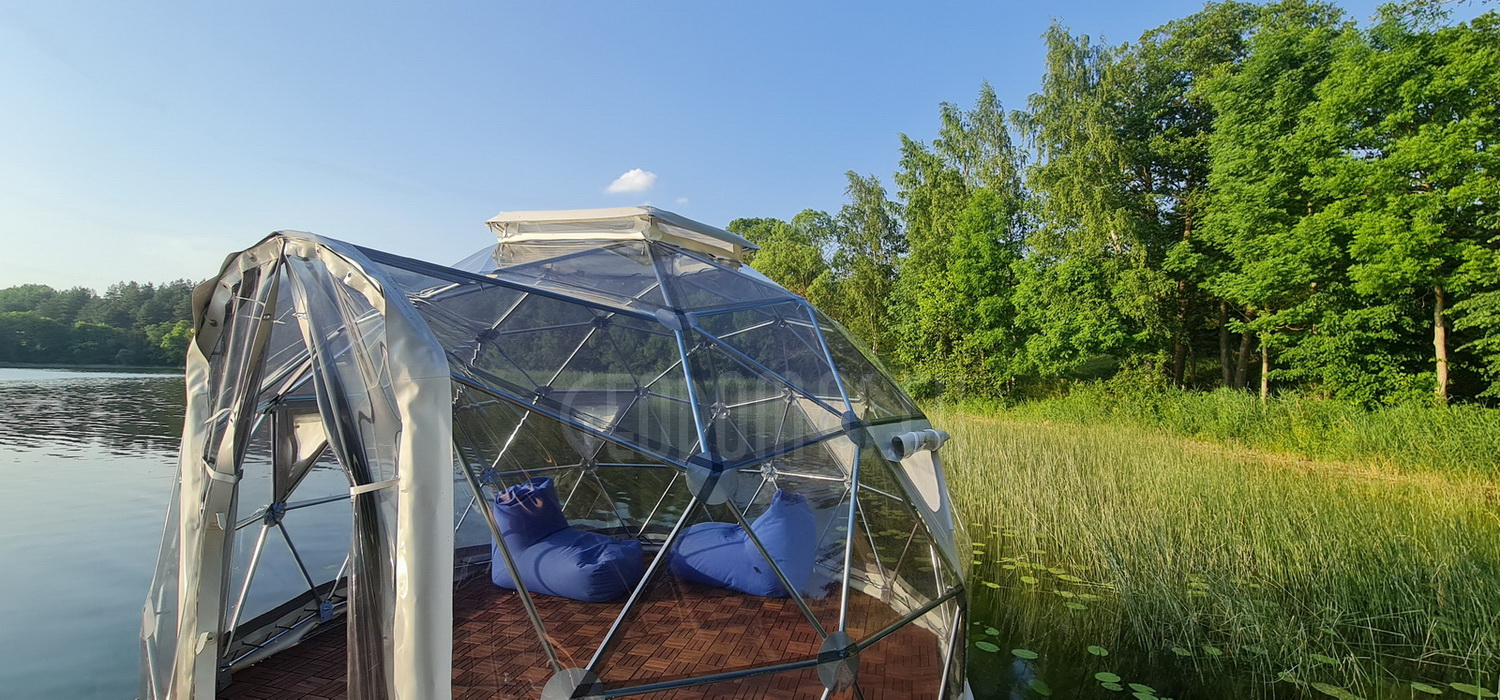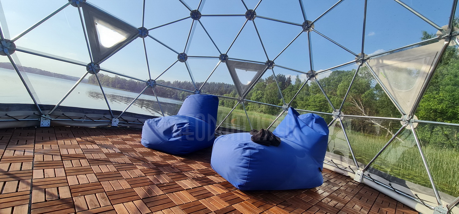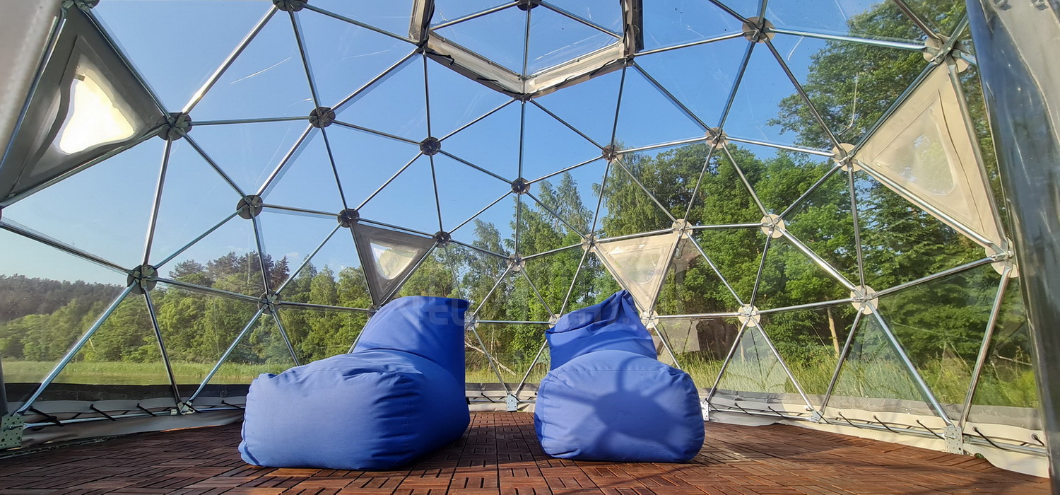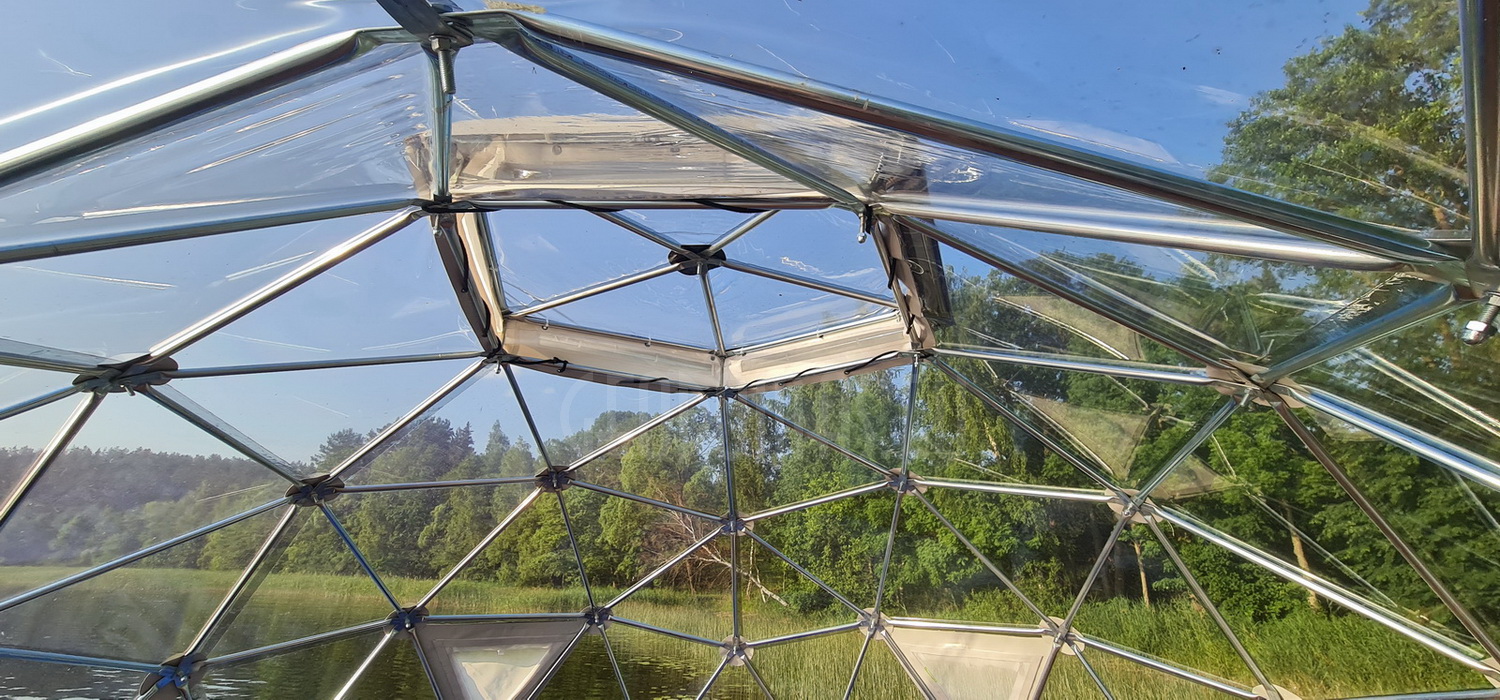 The geodesic dome structure allows you to create a light, well protected and very stable space. The main advantage of geodesic domes is the even distribution of stresses in all frame nodes.