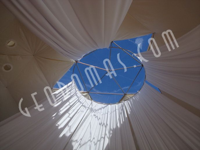 Dome covers we use the highest quality PVC tent fabrics. All our fabrics are certified and meet European Quality and Fire Resistance Standards. Detachable dome coating is known for its strengths and long service life. Due to the frequent weaving, the material is resistant to punctures, scratches and cuts. It is very easy to keep the dome covers clean. GEODOMAS durable covers are available in a variety of colors, resistant to mold and mildew, protected from UV rays and fire resistant. All fabrics have certifications to fire-retardancy NFP 92507: M2 ; DIN 4102: B1; EN 13501-1: B-s2-d0, BS 7837.