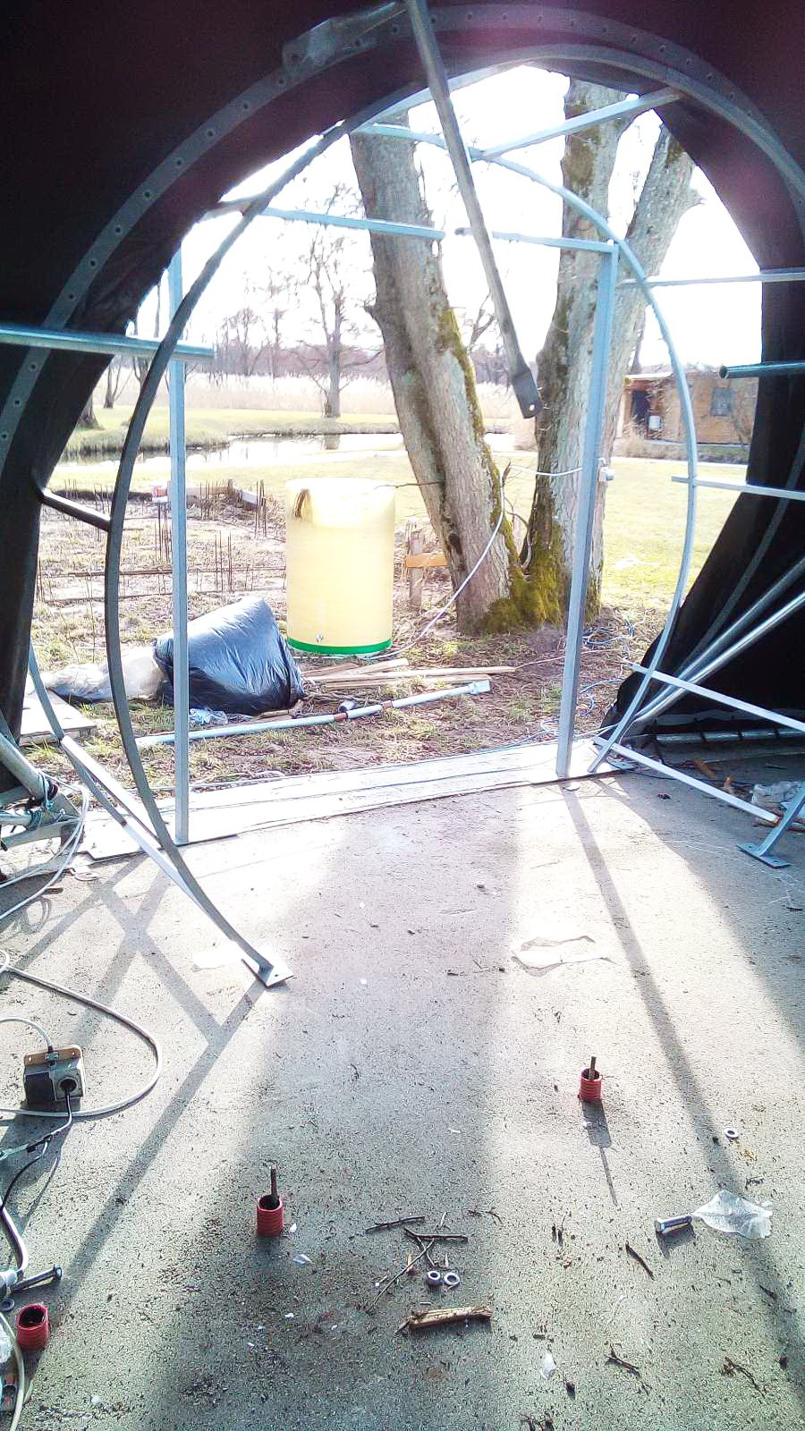 Metal, galvanized construction with a spherical shape