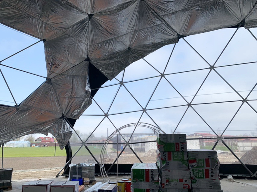 The geodesic dome structure allows you to create a light, well protected and very stable space. The main advantage of geodesic domes is the even distribution of stresses in all frame nodes.