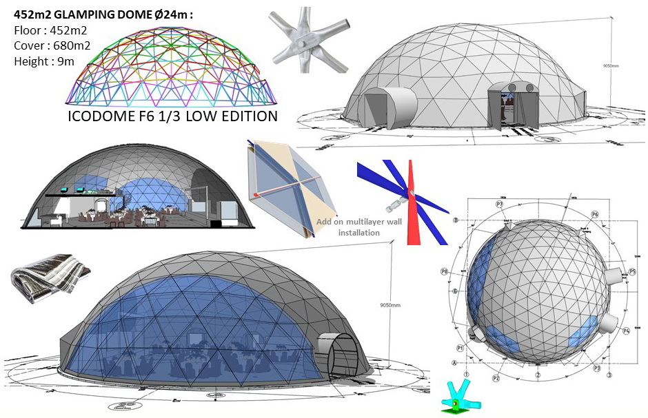 Glamping Domes do not require any columns, load walls or columns inside to allow the customers to use the maximum available area. By using steel structural elements structure becomes sustainable in terms of weather factors, livetime and loads.- The structures can be connected with tunnel paths;