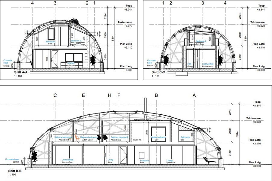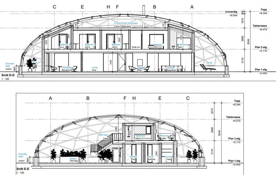 - Elevation Dome & indoor home, floor plans, room plan, areas calculation full pack.