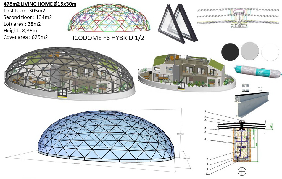 - Aluminum structural frame & Coated steel dome connectors. Installation Kit: Intermediates, Bolts, fixation elements, all elements marking and packaging.