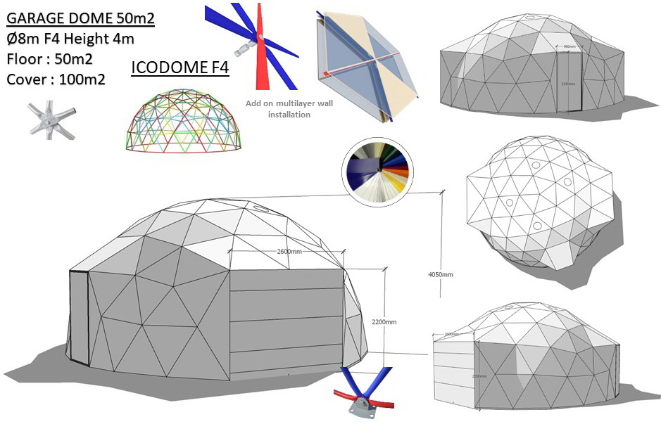 The geodesic dome structure allows you to create a light, well protected and very stable space. The main advantage of geodesic domes is the even distribution of stresses in all frame nodes.