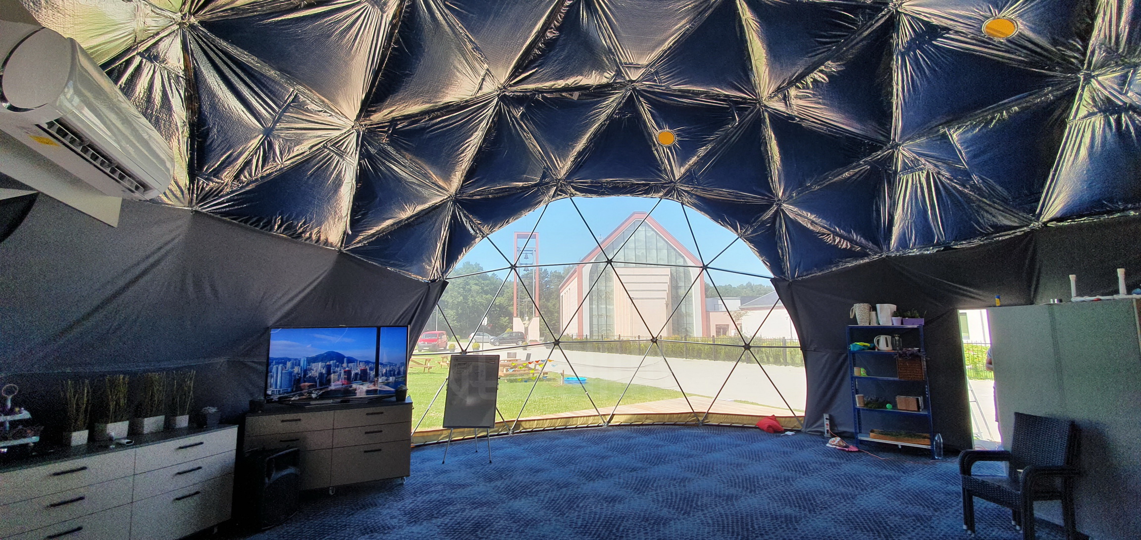 The geodesic dome structure allows you to create a light, well protected and very stable space. The main advantage of geodesic domes is the even distribution of stresses in all frame nodes.