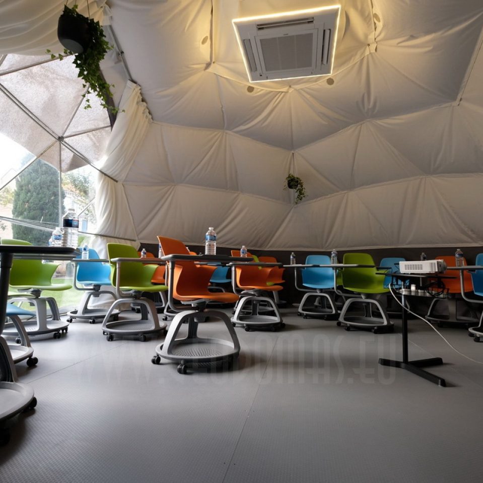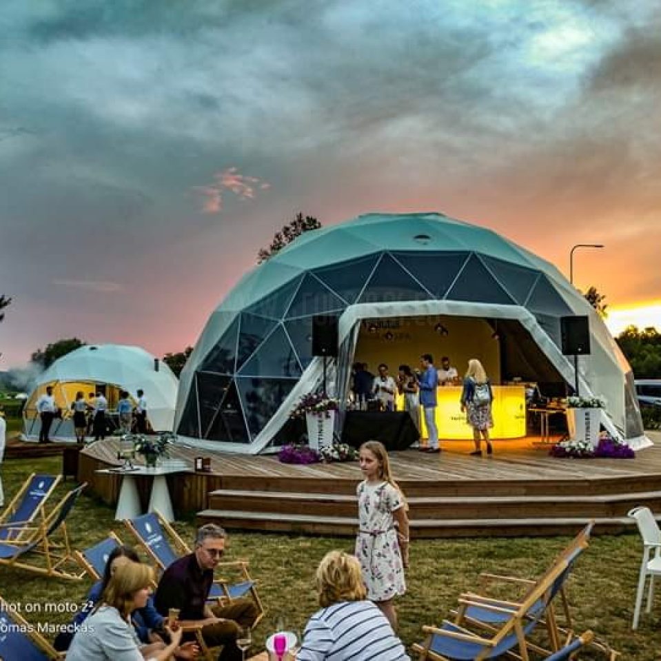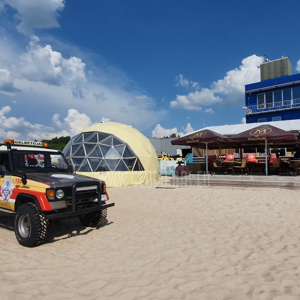 Pro kupolo langą galima stebėti saulėlydžius. Kupolas pritaikytas oro temperatūrai nuo -30 iki +80 laipsnių Celsijaus nes turi THERMIC.PRO terminę membraną. Šio sezono pristatymas, 8 metrų skersmens 50 m2 ploto kupolas – “GLAMPING DOME”.