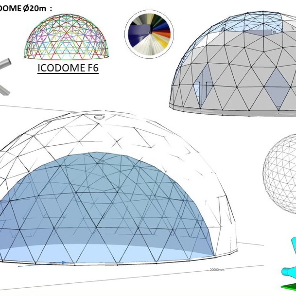 Pagrindinis kupolas Ø20m pasižymi geodezine architektūra, kuri užtikrina lengvą transportavimą, greitą surinkimą ir mobilumą. Kartu su Ø6m kupolu jie sudaro visavertę renginių bazę – pagrindinė scena ir pagalbinės erdvės.