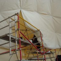 Geodeziniams kupolų uždangalams naudojame aukščiausios kokybės PVC tentų audinius. Visi mūsų audiniai yra sertifikuoti ir atitinka Europos kokybės ir atsparumo ugniai standartus.