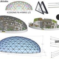 - Aliuminio konstrukcinis rėmas ir dengto plieno kupolo jungtys. Montavimo rinkinys: Tarpinės dalys, varžtai, tvirtinimo elementai, visų elementų žymėjimas ir pakuotė.