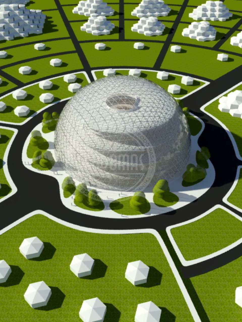 The Geodomas team, in collaboration with its partners, presents an innovative solution for covering ski slopes – a unique, circular ski slope designed for luxury class, which allows for extending the slope length and creating a natural spiral descent. These domes connect into a complex, forming a distinctive architectural solution specifically developed for a project planned to be built in Israel.