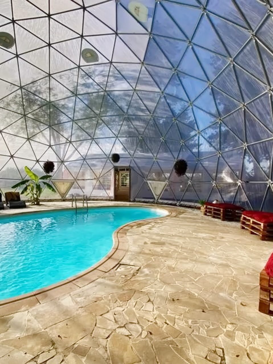 Each dome represents a new day, a new sensation. In one, you feel as if embraced by the earth, with natural wood and stone tones allowing you to forget the city noise. Another, hidden among the stars, invites you to gaze at the night sky as the lights fade over the mountain peaks. The third dome is a friend of the water element, with a warm thermal pool under the open sky, where the sound of water soothes the soul. The fourth is an oasis of light and energy, where every ray that penetrates through the window floods the entire space with vitality.