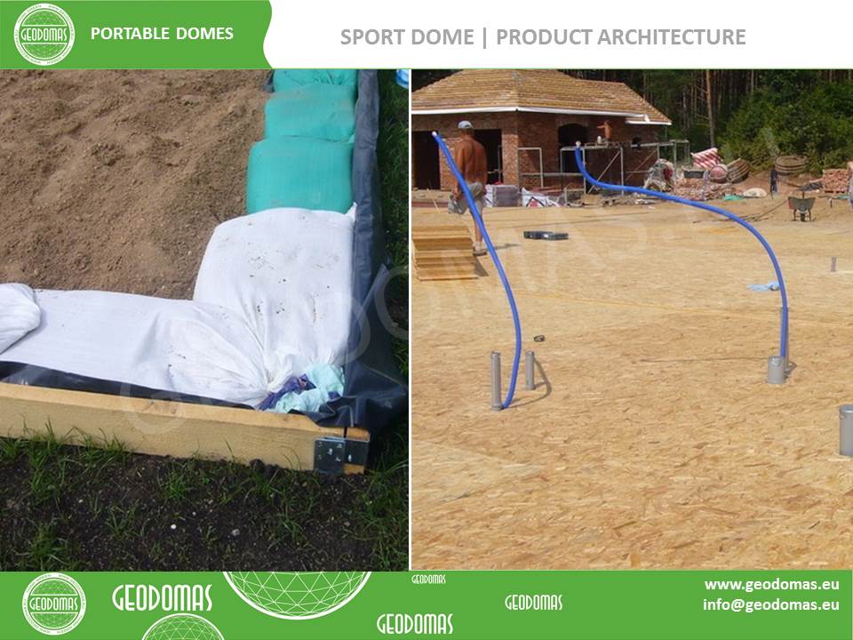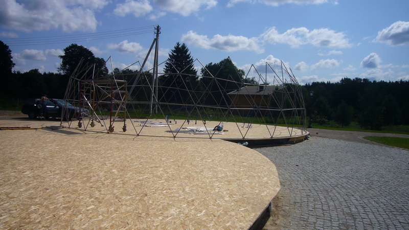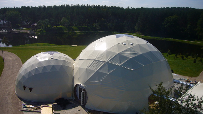 Du geodeziniai kupolai – Ø20m ir Ø13m – sujungti į vieningą pokylių erdvę. Jie pastatyti naudojant nerūdijančio plieno konstrukcijas su GEODOMAS “TUBE” sistema. Kupolai uždengti baltu PVC tentu, su permatomais segmentais, leidžiančiais dienos šviesai patekti į vidų, tuo pačiu užtikrinant eleganciją ir šviesos žaismą.