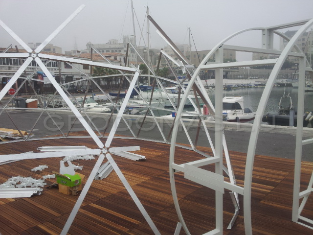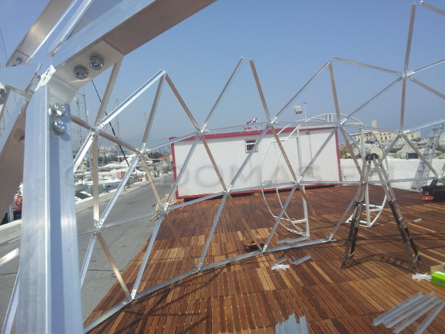 Kupolo rėmas buvo pagamintas iš tvirto, tačiau lengvo aliuminio, naudojant GEODOMAS STAR sistemos stebules. Tai užtikrina konstrukcijos patikimumą net esant pakrantės klimato iššūkiams – drėgmei, vėjui ir temperatūrų pokyčiams.
