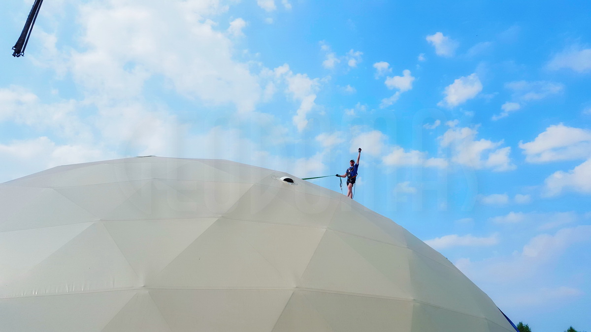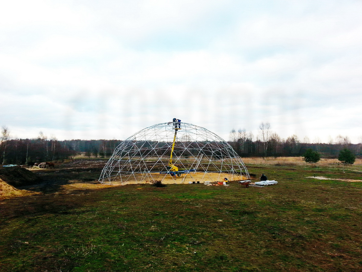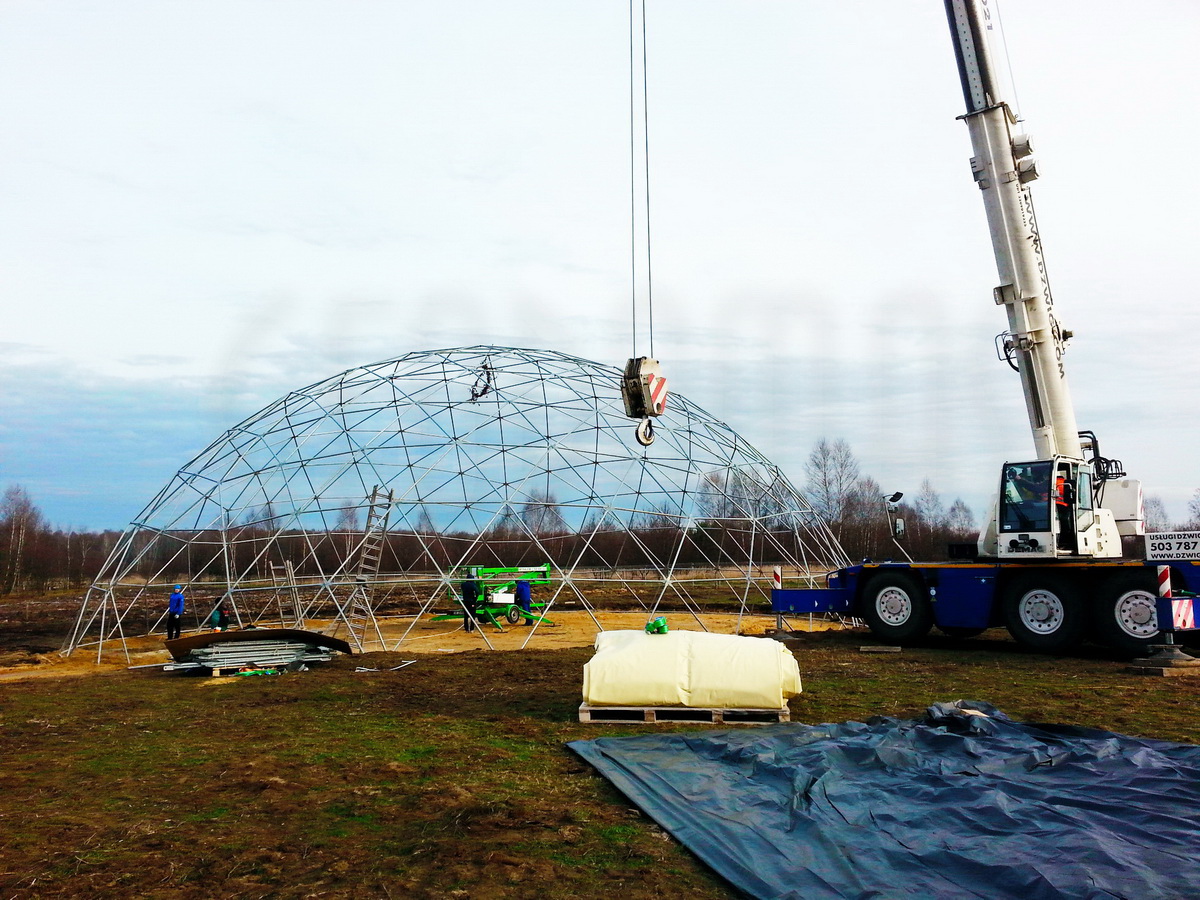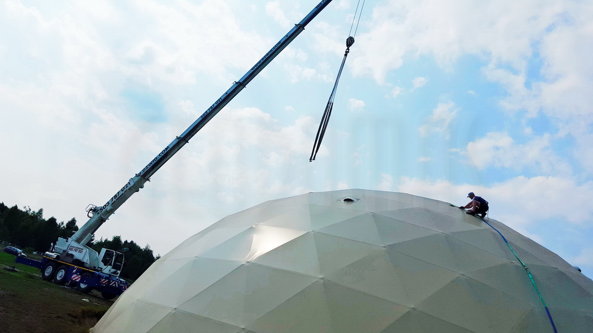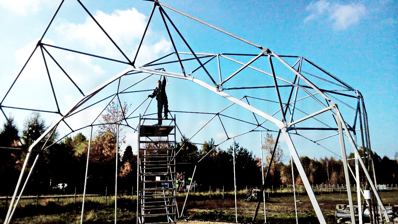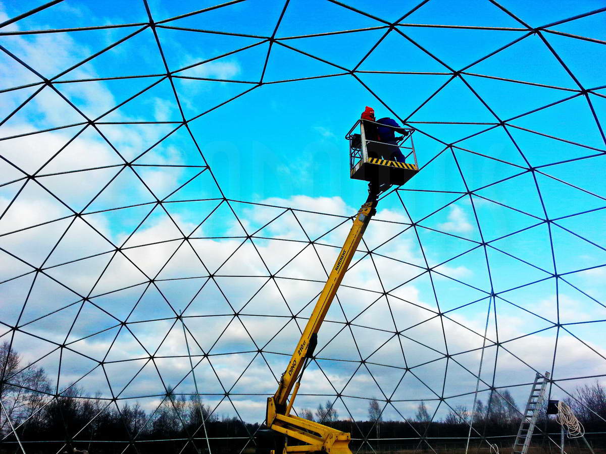 Kupolo rėmas pagamintas iš tvirtų plieninių vamzdžių, užtikrinančių stabilumą net sudėtingomis oro sąlygomis. Konstrukcija suprojektuota pagal GEODOMAS standartus, laikantis Eurokodų reikalavimų ir pritaikyta didelėms apkrovoms.