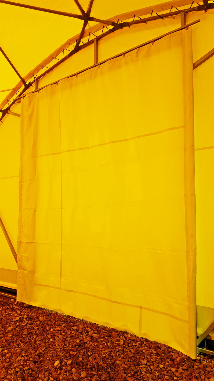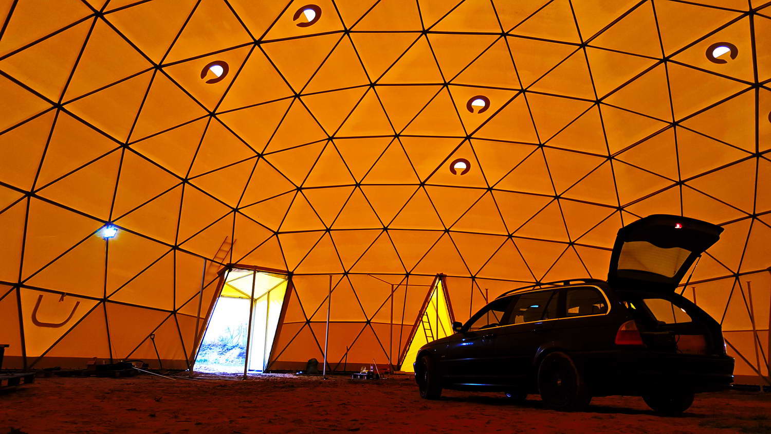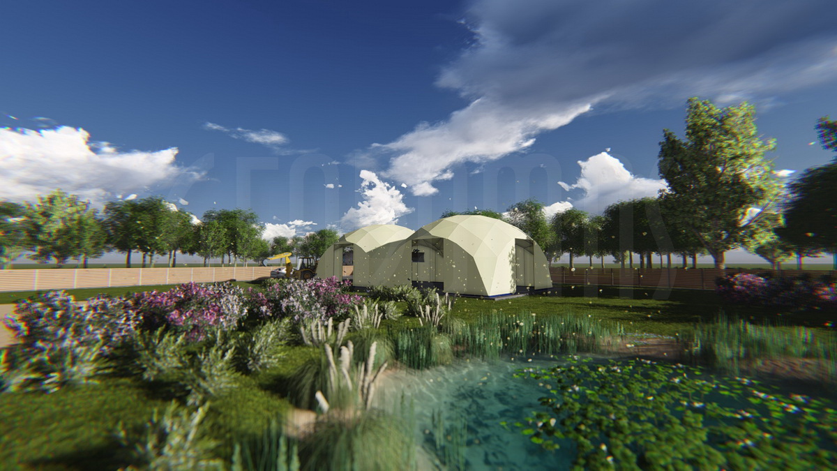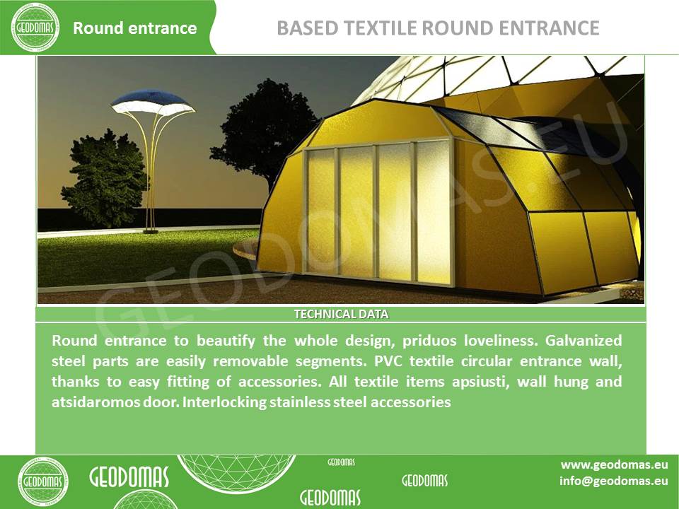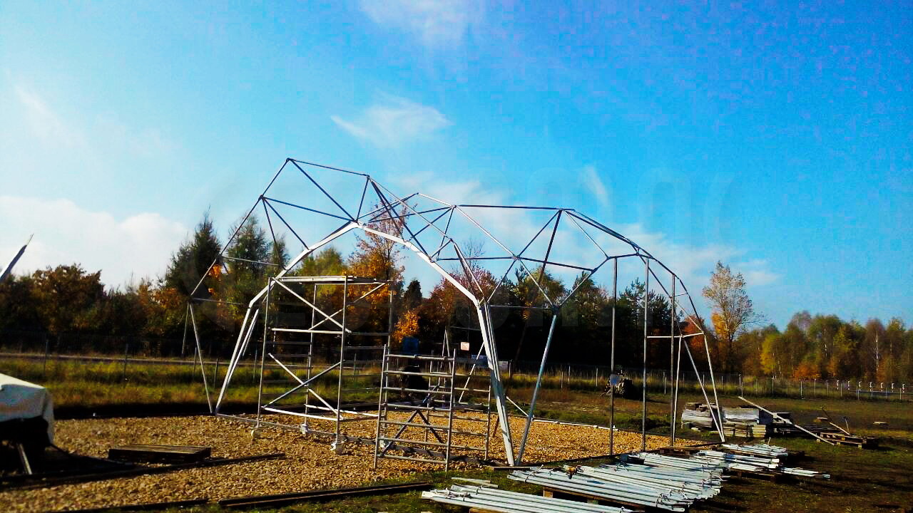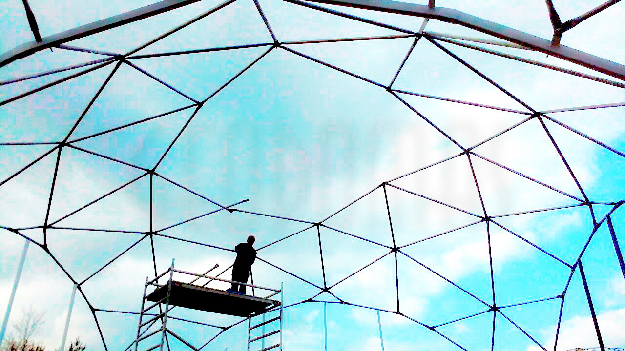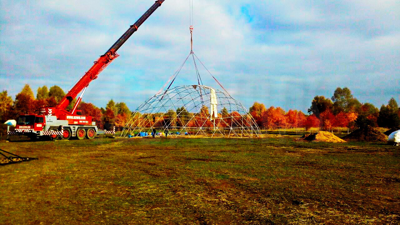 Kupolo rėmas pagamintas iš tvirtų plieninių vamzdžių, užtikrinančių stabilumą net sudėtingomis oro sąlygomis. Konstrukcija suprojektuota pagal GEODOMAS standartus, laikantis Eurokodų reikalavimų ir pritaikyta didelėms apkrovoms.