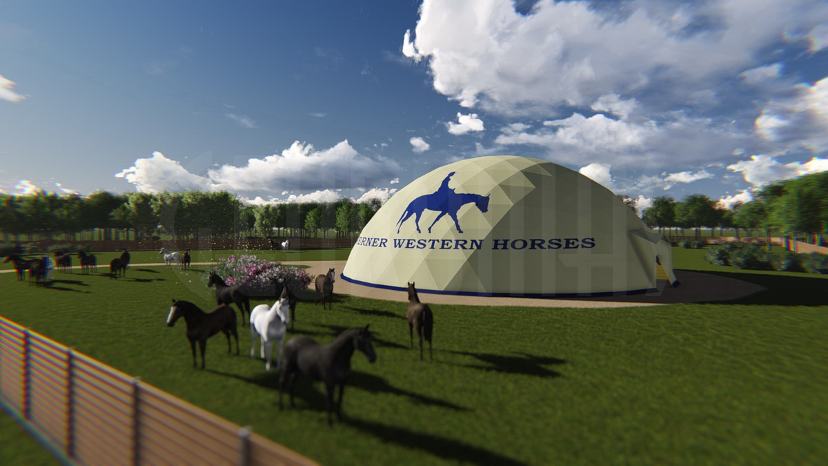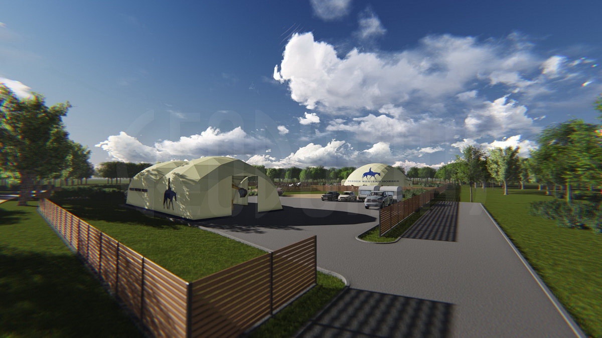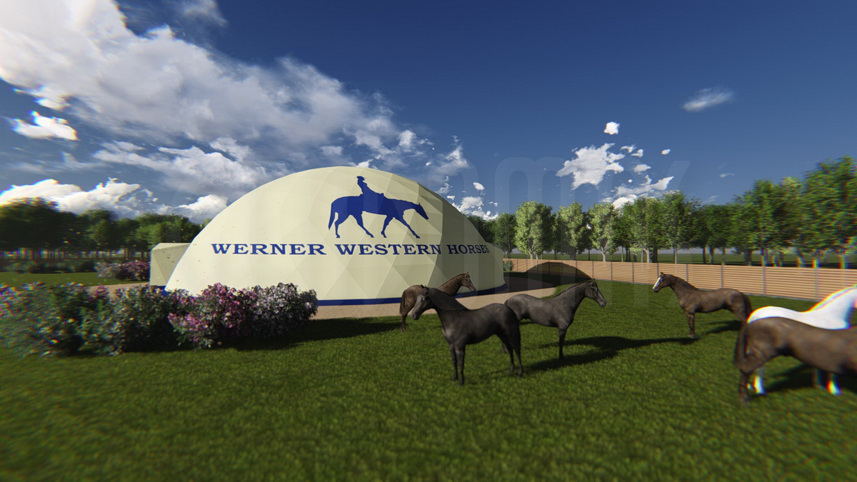 WERNER WESTERN HORSES – tai ne tik žirgynas, bet visa jojimo filosofija, sukurta modernioje aplinkoje. Kupolas Ø24m skersmens tapo širdimi viso komplekso – tiek sportui, tiek laisvalaikiui. Didžiulė vidaus erdvė leidžia treniruotis bet kokiu oru.