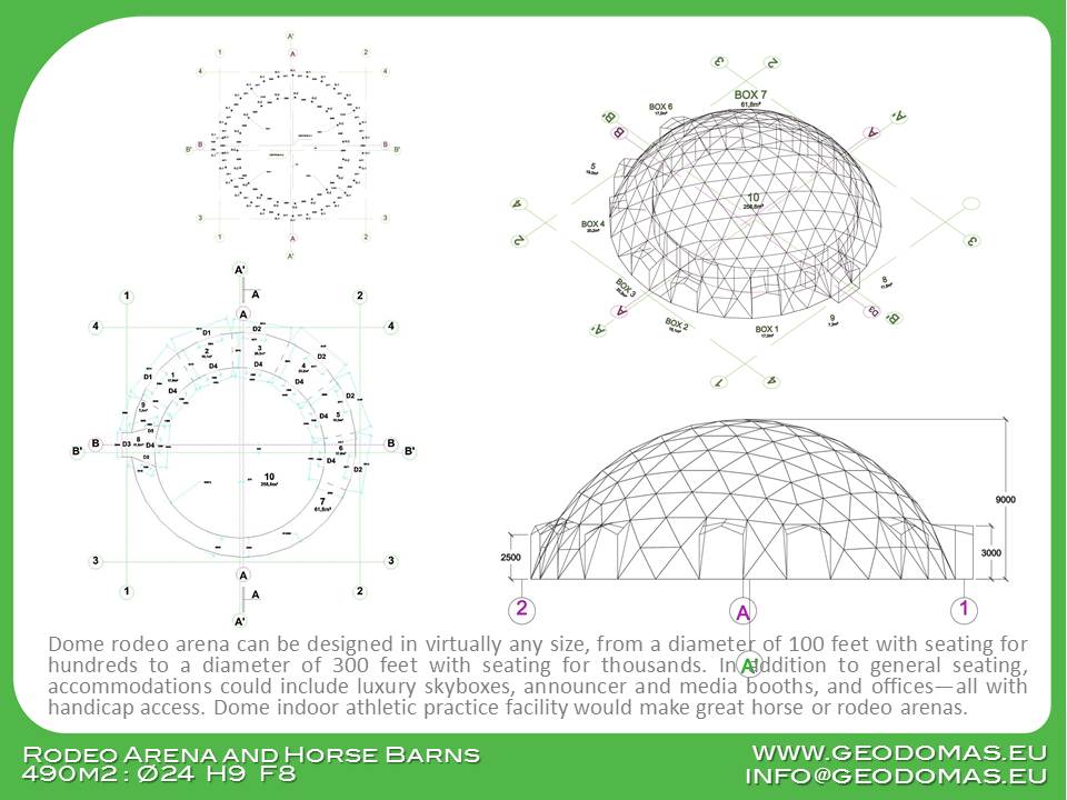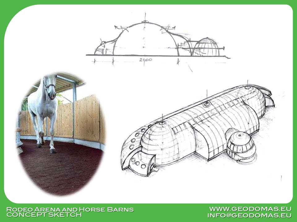 🌐 Modelis: Žirgynas + manežas kupole Ø24m