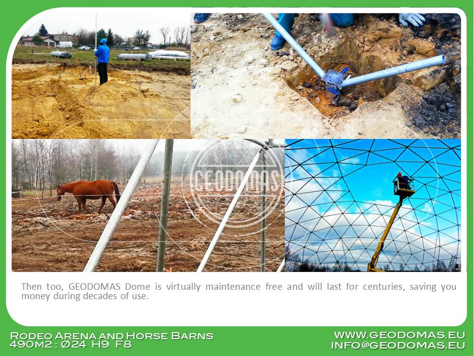 Kupolas tinkamas įvairioms reikmėms: nuo jojimo mokyklų iki elitinių žirgynų, nuo žemės ūkio švenčių iki parodų ir pasirodymų. Toks universalumas paverčia šį sprendimą labai vertingu investiciniu objektu.