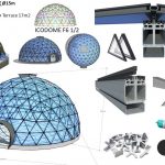 - Aliuminio konstrukcinis rėmas ir dengto plieno kupolo jungtys. Montavimo rinkinys: Tarpinės dalys, varžtai, tvirtinimo elementai, visų elementų žymėjimas ir pakuotė.